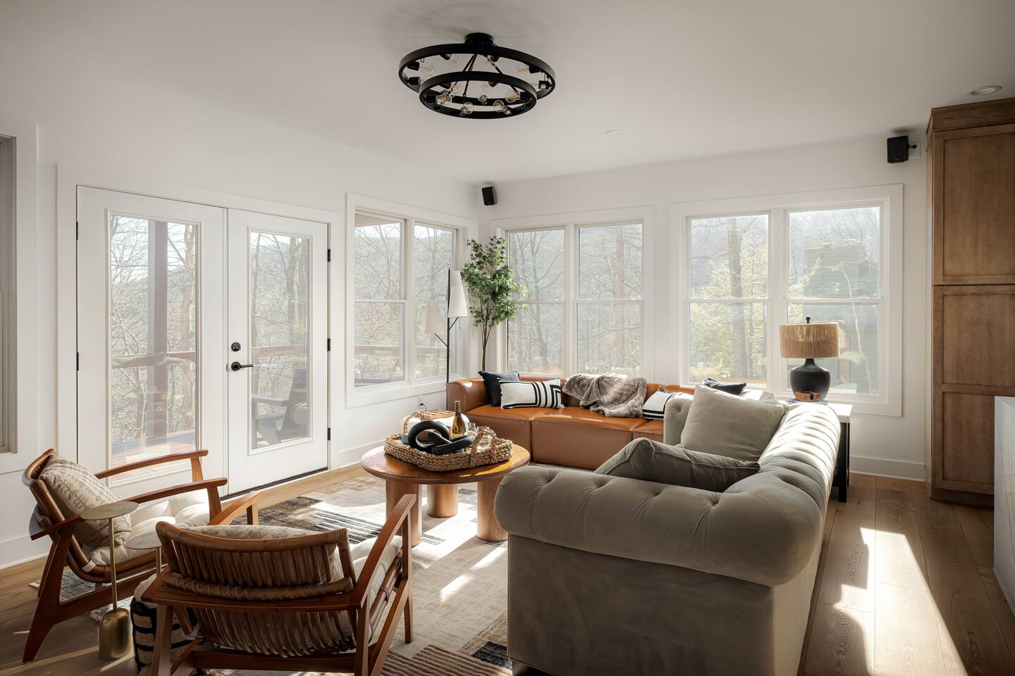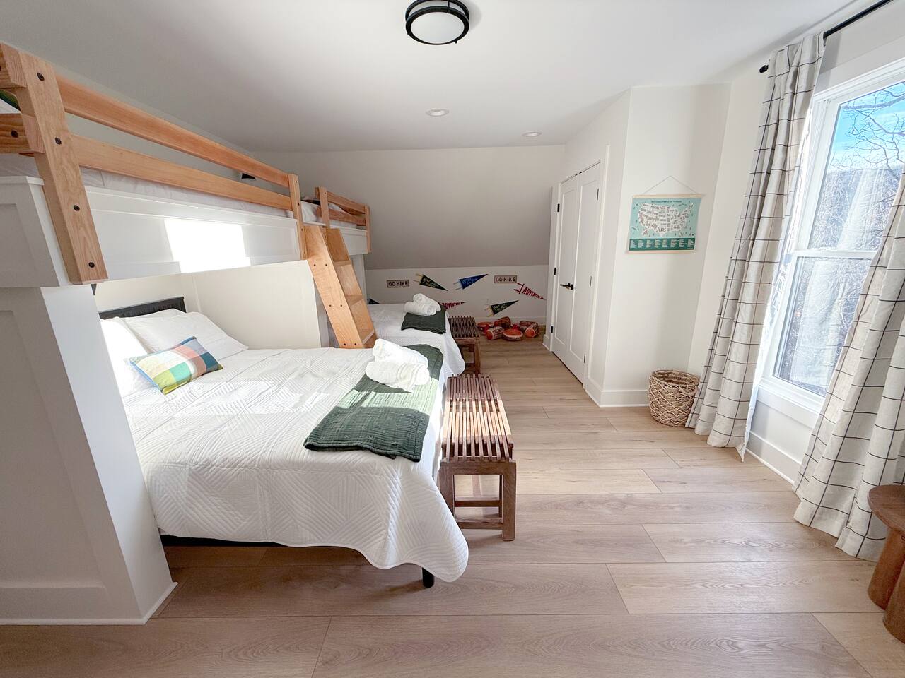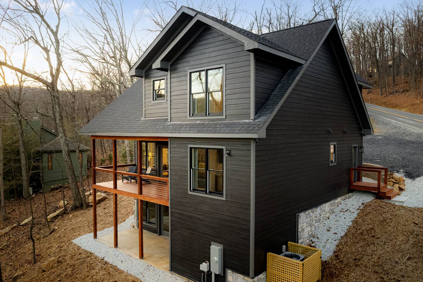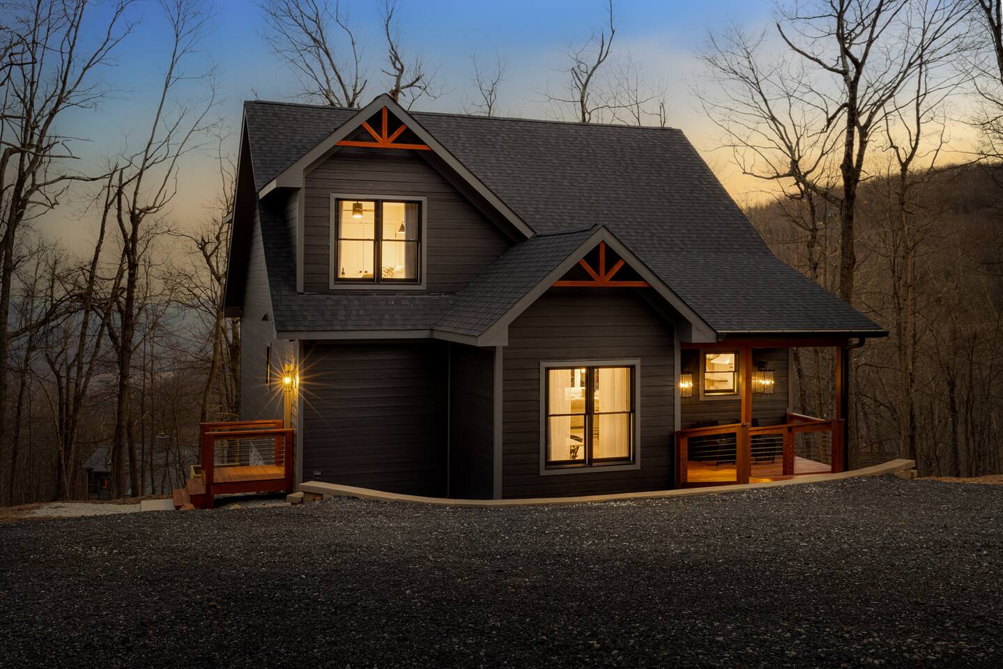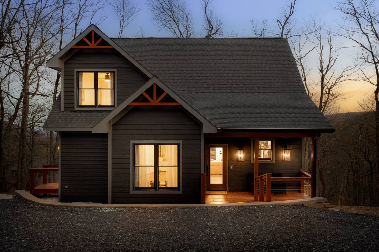 ↪Onyx Hill is pet friendly! We allow up to 1 dog with a $100 pet fee (total, not per night). ↪Parking: Gravel driveway can accommodate 6 vehicles. ↪Entry: There is a ramp to the main entrance to the home, please hold the railings when walking to the entry as in inclement weather (snow, ice or rain) it can become slippery even with non-slip strips. There is also a side entry that leads into the mudroom, this entry has a few steps. ↪Bugs and wildlife: With the home being on the mountain and in a wooded area, please be aware of all the bugs and wildlife that you might encounter (insects, spiders, mice, snakes, and bears). Although we treat the home for insects, they do find their way inside the cabin despite all efforts to keep them out. ↪Zero tolerance policy for parties or events. ↪Sports and activities such as Snow and Summer Tubing, Golf, Lake Monocan beach park access for swimming, fishing, paddle boats, kayaks, and other water activities available with a fee - more details in our guidebook received upon booking ↪Guests can enjoy free community pool access in the summer season (though the HOA rules stipulate no more than 6 guests at a time, and the permitted hours are 2-6pm). ↪We provide our guests $1,500 of coverage for accidental damage to the property or its contents. The cost of this is already embedded in the cleaning fee. ↪Wifi is fast with a strong signal throughout the house and deck. All four bedrooms plus the living room feature smart TVs where you can access all the main streaming services. ↪Linens and towels provided. ↪Pack n play, high chair, and kid dishes provided. ↪We do require a separate rental agreement, which we will send a link to e-sign after you book. There are no additional fees beyond those listed here.
