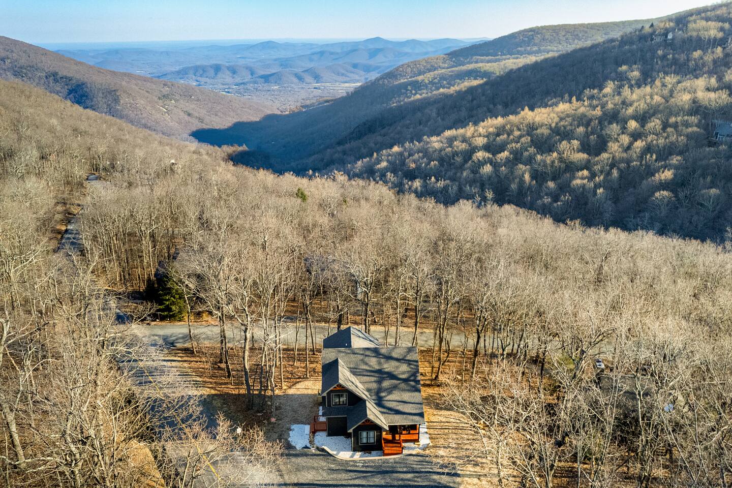 Onyx Hill is located in a peaceful area of the resort, away from the hustle and bustle and close to Upper Shamokin Falls, hiking trails and just a short drive to the slopes and all the amenities of Wintergreen resort. Some of the best hiking trails in the state are off the Blue Ridge Parkway (15 minutes from the home). Also nearby are two sandy-beach-entrance lakes plus a community pool for swimming, and over dozen wineries, breweries, and distilleries- all within a 30 minute drive. The home layout is as follows: Main level (0 steps required to enter main level from driveway): Step inside Onyx Hill to discover a spacious open-concept living area bathed in natural light, adorned with contemporary furnishings, and accented with tasteful décor. The open living space on the 1st floor has a family room with plenty of seating to enjoy movies, play board games or just hang out. The fully equipped kitchen boasts stainless steel appliances, ample counter space, and all the essentials you need to whip up delicious homemade meals during your stay. Whether you're brewing a fresh pot of coffee to start your day or preparing a gourmet feast, this kitchen is sure to inspire your inner chef. The dining room is just next to the main entry and comes with soaring vaulted ceilings and a table large enough for the whole house to eat a cozy meal together. The primary bedroom suite (BR1) is also on the main level, with king bed and hybrid mattress, comfortable bedding, soft linens, and plenty of storage space to make you feel right at home. The ensuite bathroom features double vanity, soaker tub, and tile shower. Outside, a private deck offers the ideal spot to soak up the serene mountain views and crisp alpine air. Sip your morning coffee as you listen to the sounds of nature, or simply relax with a good book and a glass of wine from one of the hundreds of local family-owned vineyards and let the worries of everyday life melt away. Rounding out the main level are a half bath and laundry room. Upper level: Up the stairs, you'll find 3 additional bedrooms and 2 additional full bathrooms: - BR2: Two queen bedroom with ensuite bathroom featuring double vanity and shower/tub combo - BR3: Queen bedroom - BR4: Bunk bedroom with two sets of twin-over-queen beds - Hall full bath with double vanity and tile shower